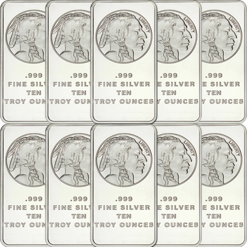 Created to replicate and celebrate the buffalo round, the 10 oz Silvertowne Buffalo Silver bar is an excellent way to stack your wealth in ounces.
